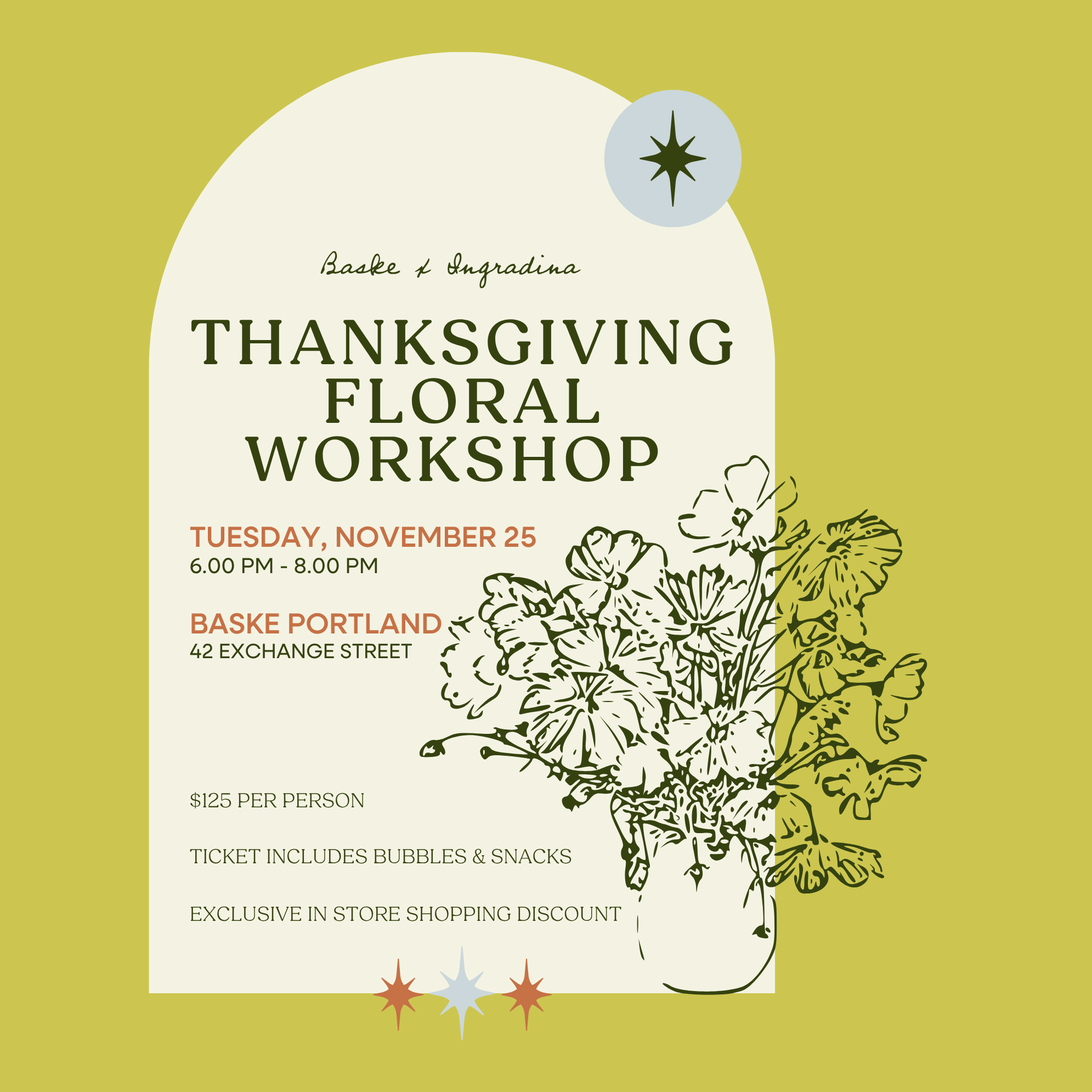 Just in time for Thanksgiving, you'll be led through the process of shape, color, balance and intrigue, leaving with an arrangement that's sure to be a sweet centerpiece for your dinner table.