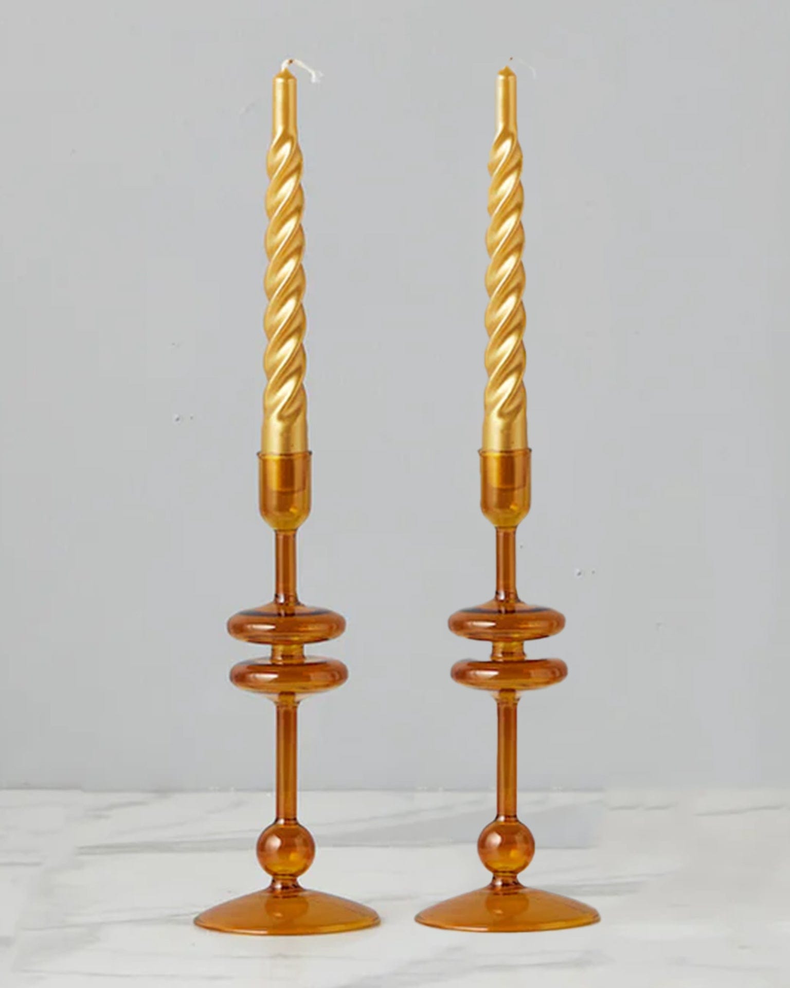 Amber Glass Candlesticks Set of 2 - Medium