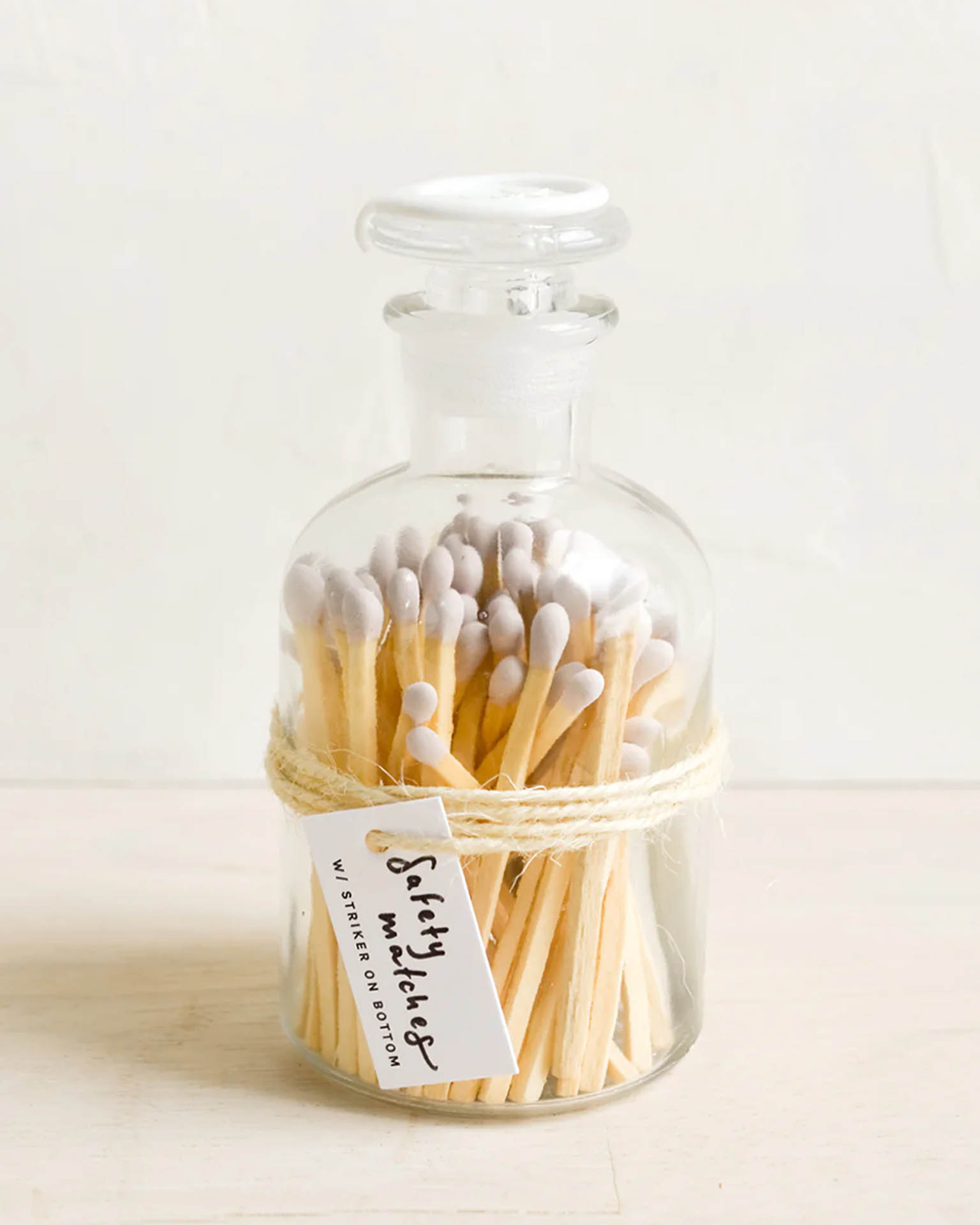 - Size: Jar: 4.5" tall; matches are 2.5" long