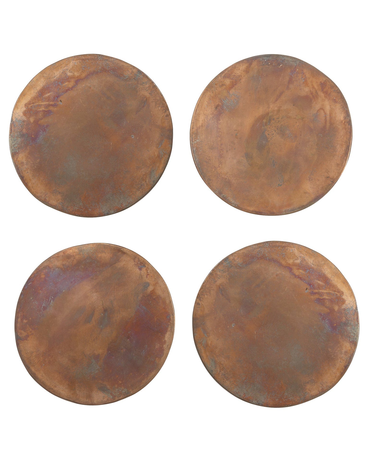 These Coasters from SIR / MADAM are fashioned using pure metals and alloys that will oxidize over time; the graphically patinated disks will age gracefully as their lacquer fades to reveal the natural wear of their use. Each piece is backed with natural cork to protect your delicate surfaces.