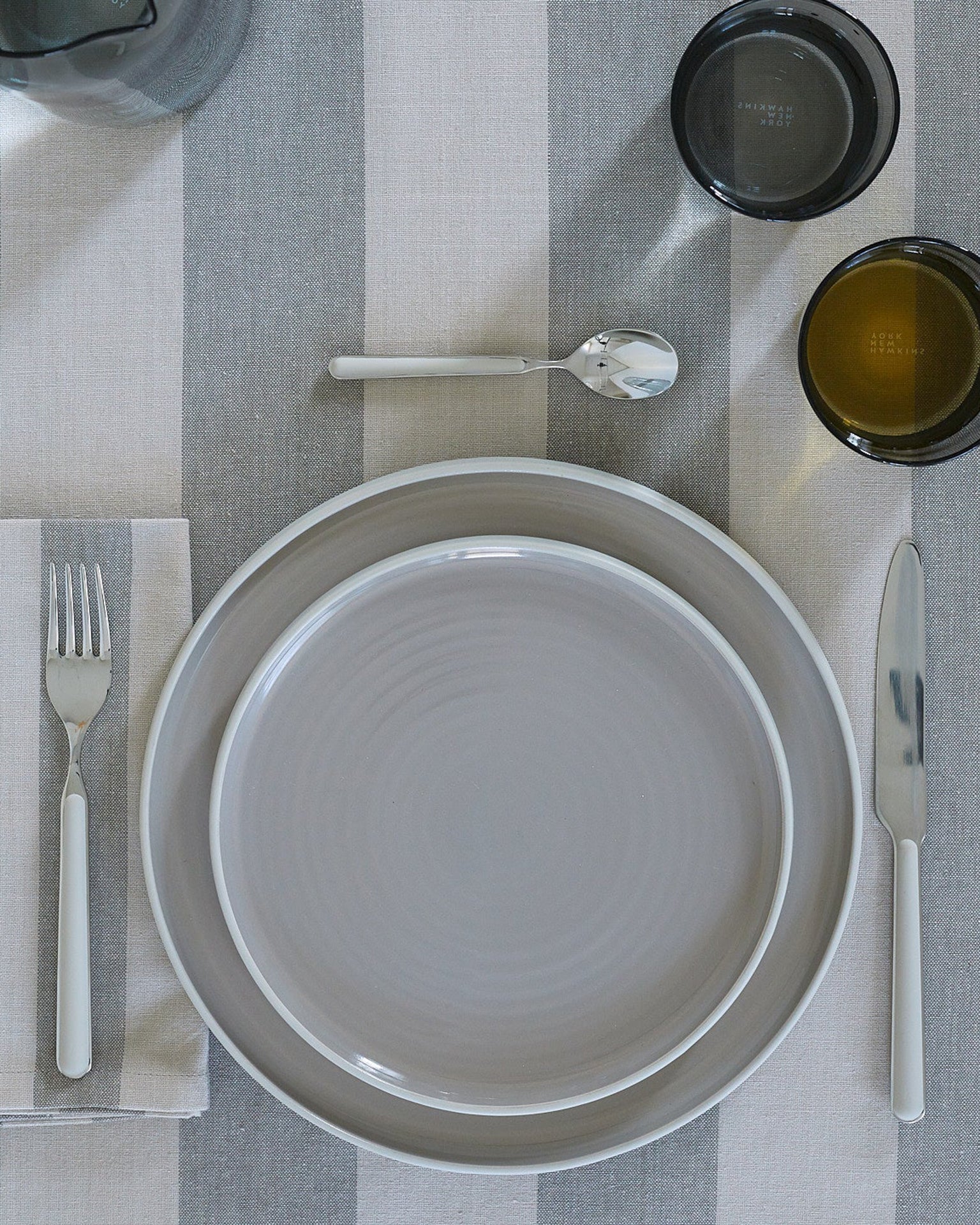An everyday essential that's pragmatic and elegant. Hawkins New York's Dinner Plates are wide and flat for tasty-lookin' plating. They come in a set of 4 and feature soft rippling throughout with a slight raised edge for a hand thrown feeling (without the hand thrown price tag).