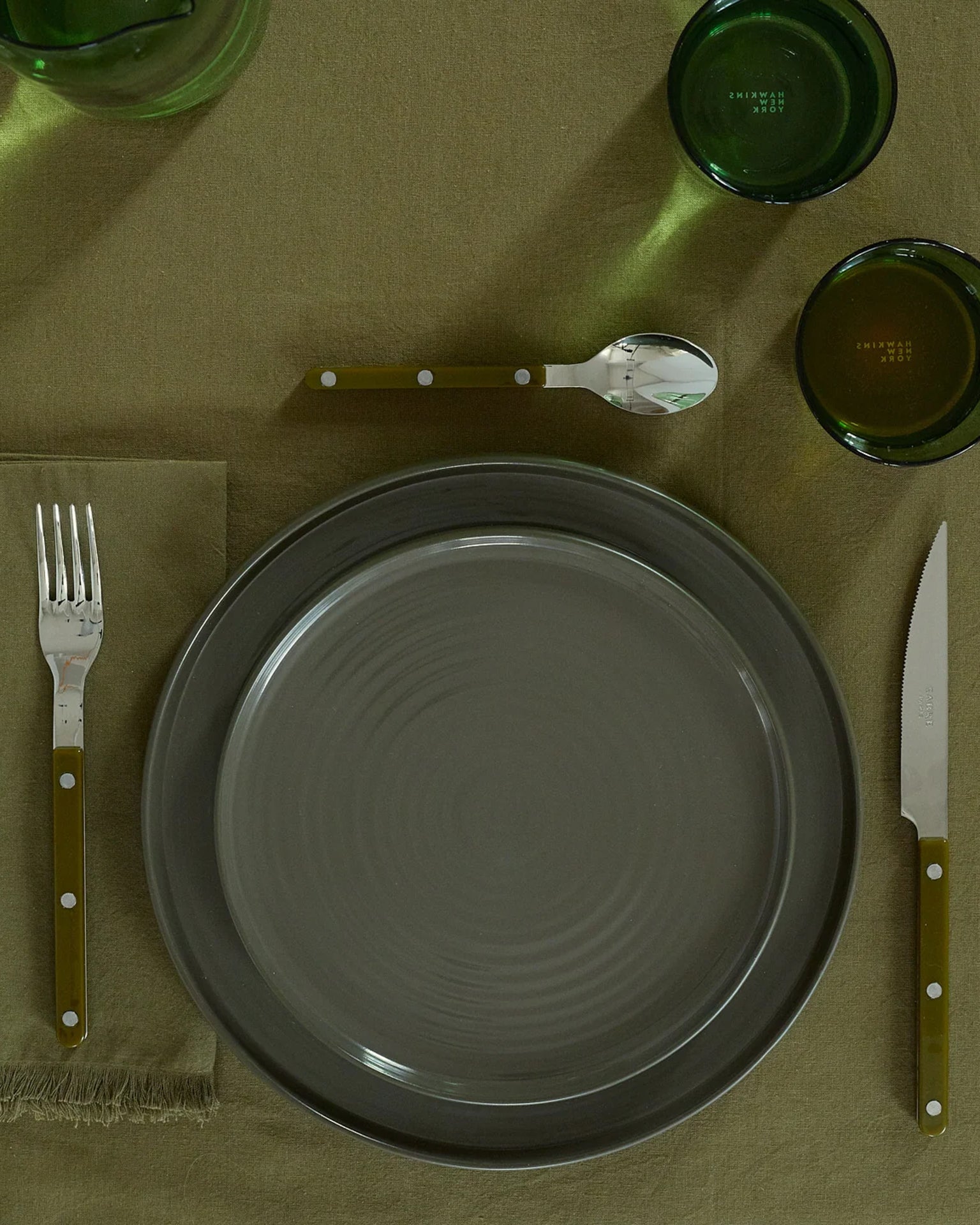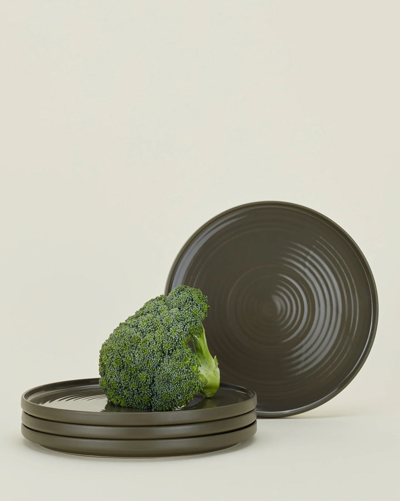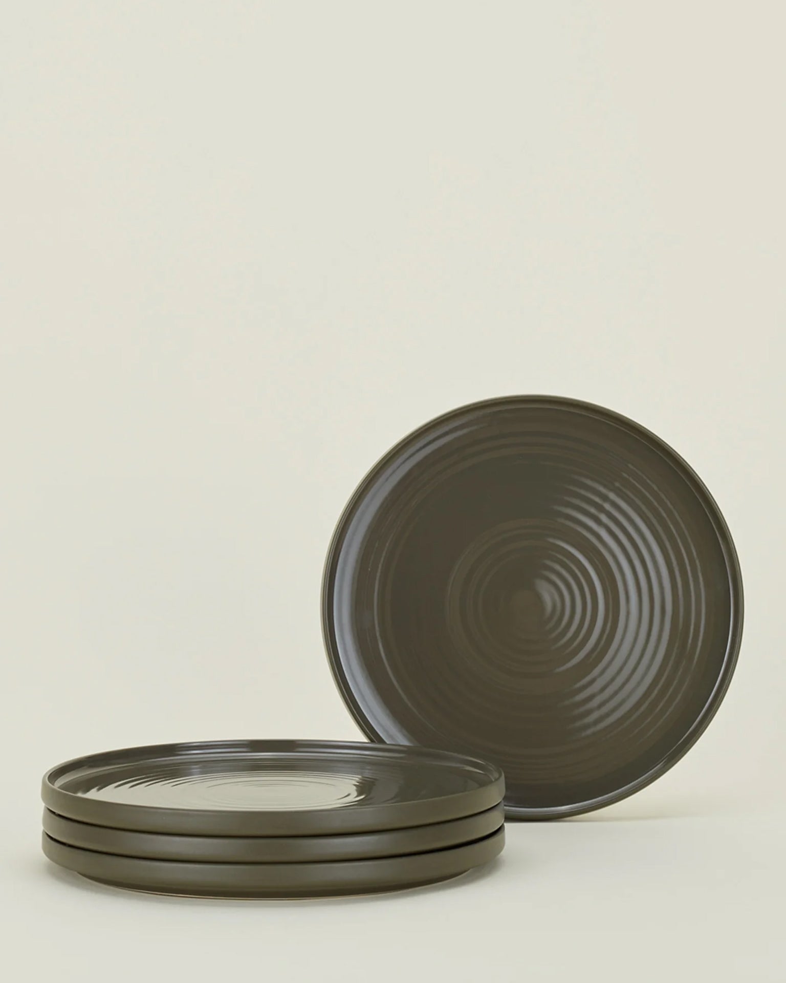 An everyday essential that's pragmatic and elegant. Hawkins New York's Dinner Plates are wide and flat for tasty-lookin' plating. They come in a set of 4 and feature soft rippling throughout with a slight raised edge for a hand thrown feeling (without the hand thrown price tag).