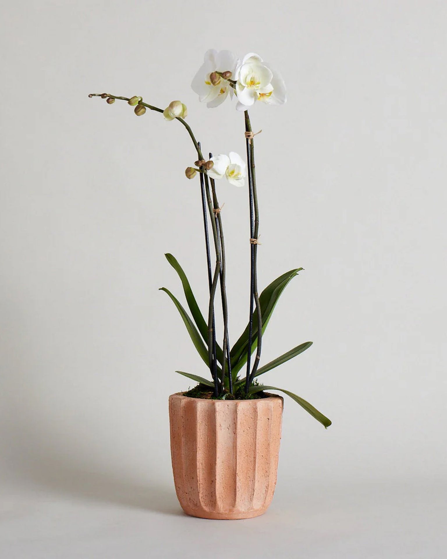 The Fluted Planter comes in two sizes (Large sold separately) and while they're designed for both indoor and outdoor use, the should be brought indoors during the winter in cold climates to protect them from the elements.