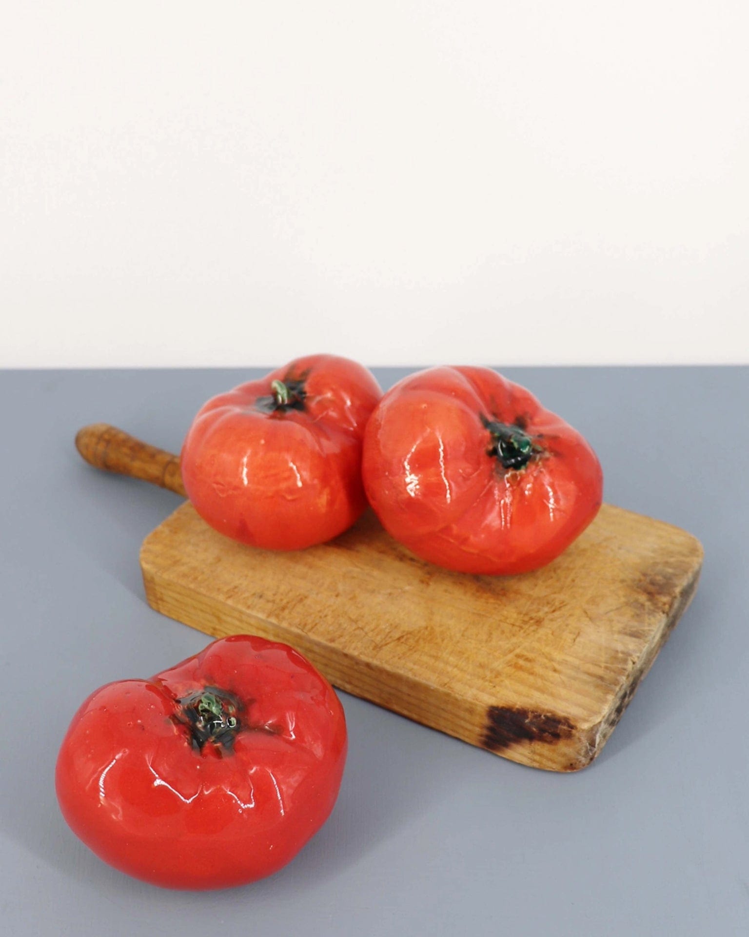 One of the most beautiful things about Spanish crafts are the different ceramic pieces that will fit anywhere: in a salad bowl full of them, on a shelf or on a book or magazines. These ceramic tomatoes from Eturel Madrid are handmade, so no two are alike and that's just the way we like it.