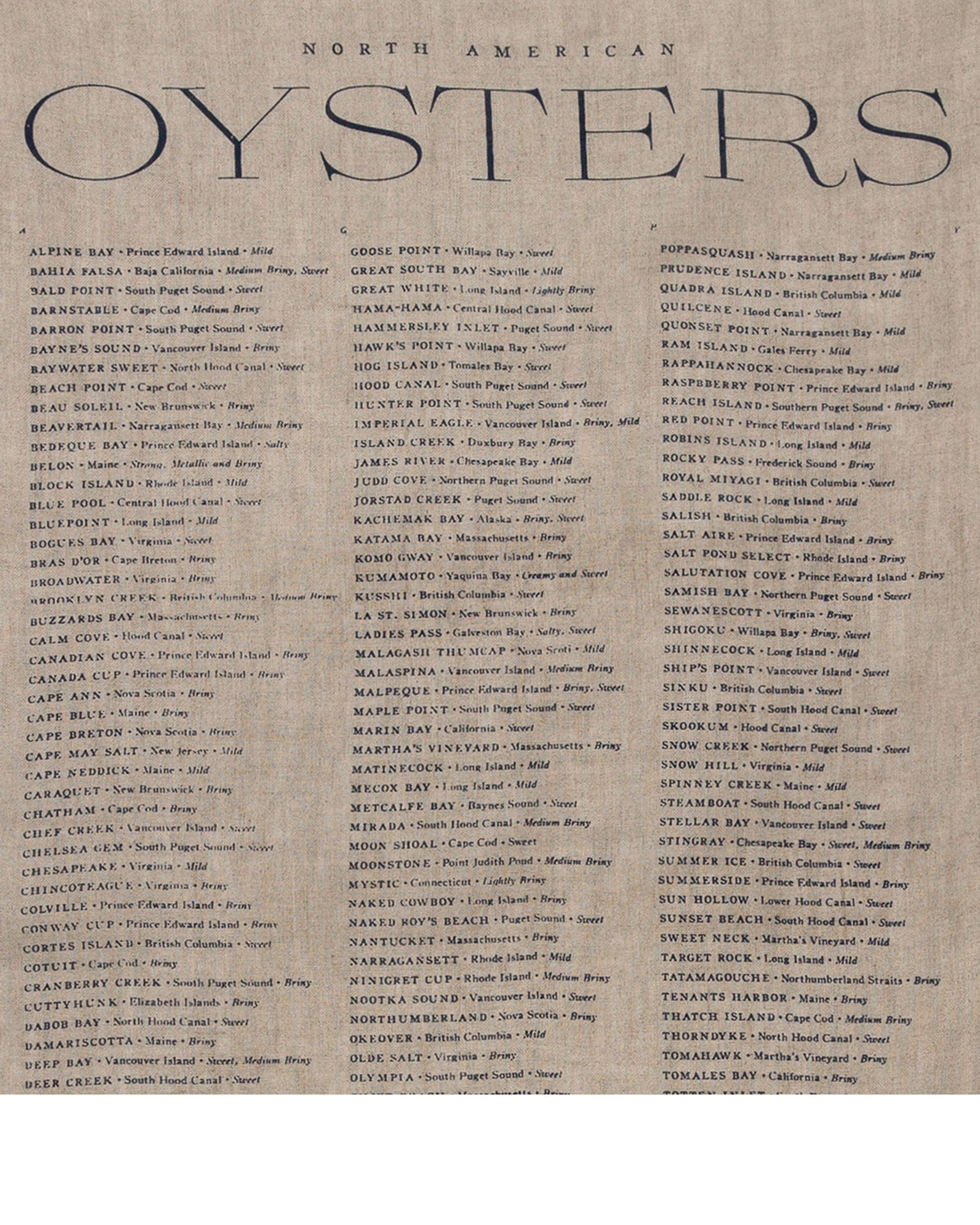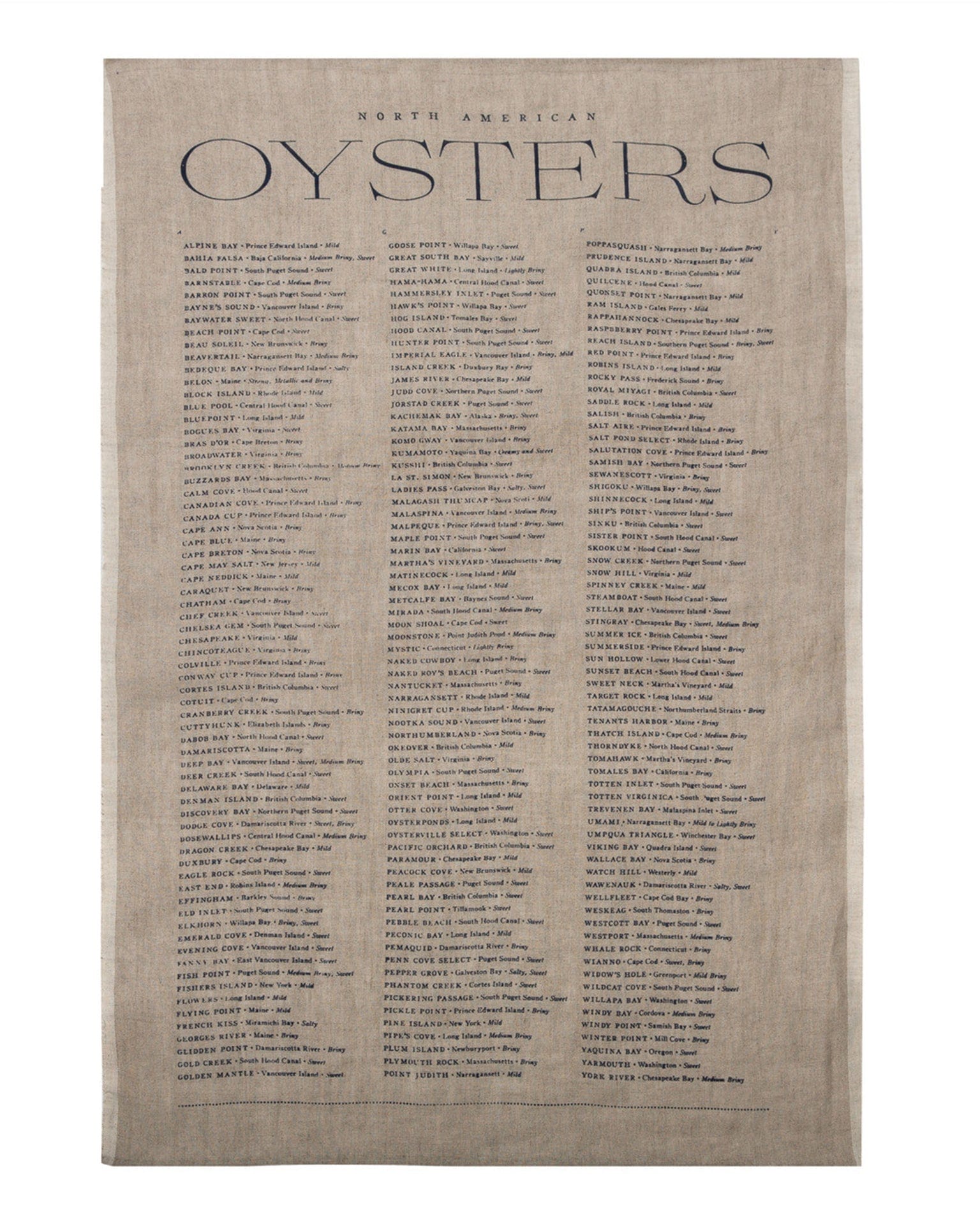 Oyster List Tea Towel, Natural