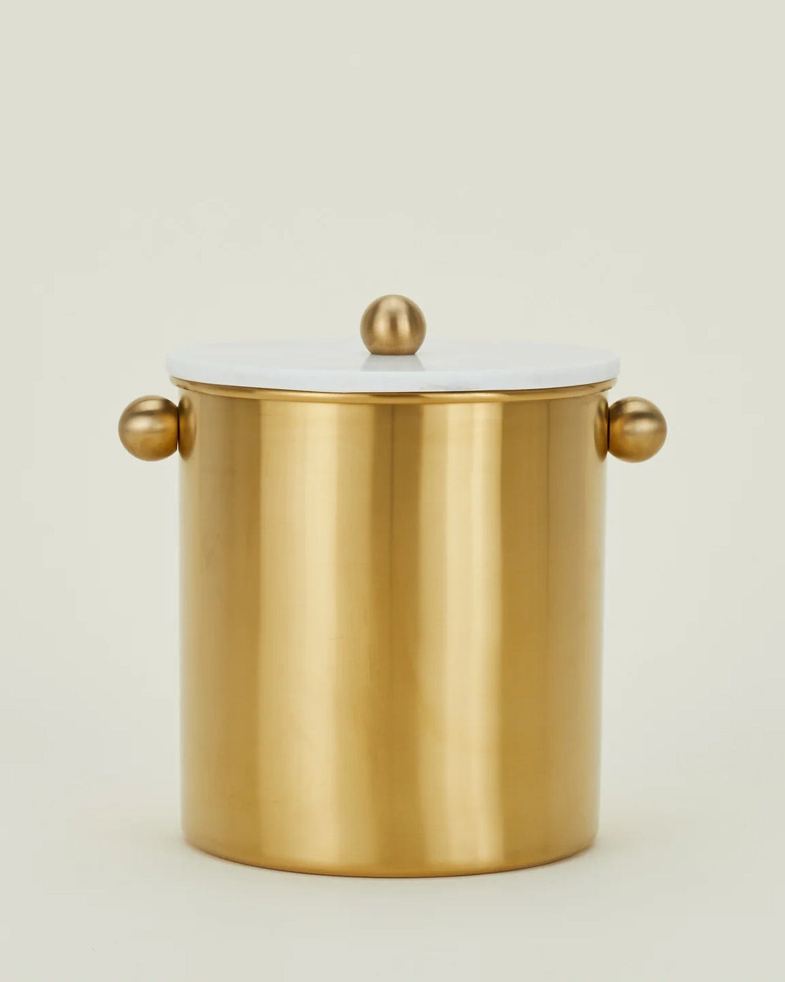 The Simple Collection from Hawkins New York is all about pared back design, made from tried and true materials that last and last. This Ice Bucket features an appealing brass finish, with round knobs for easy liftin'.