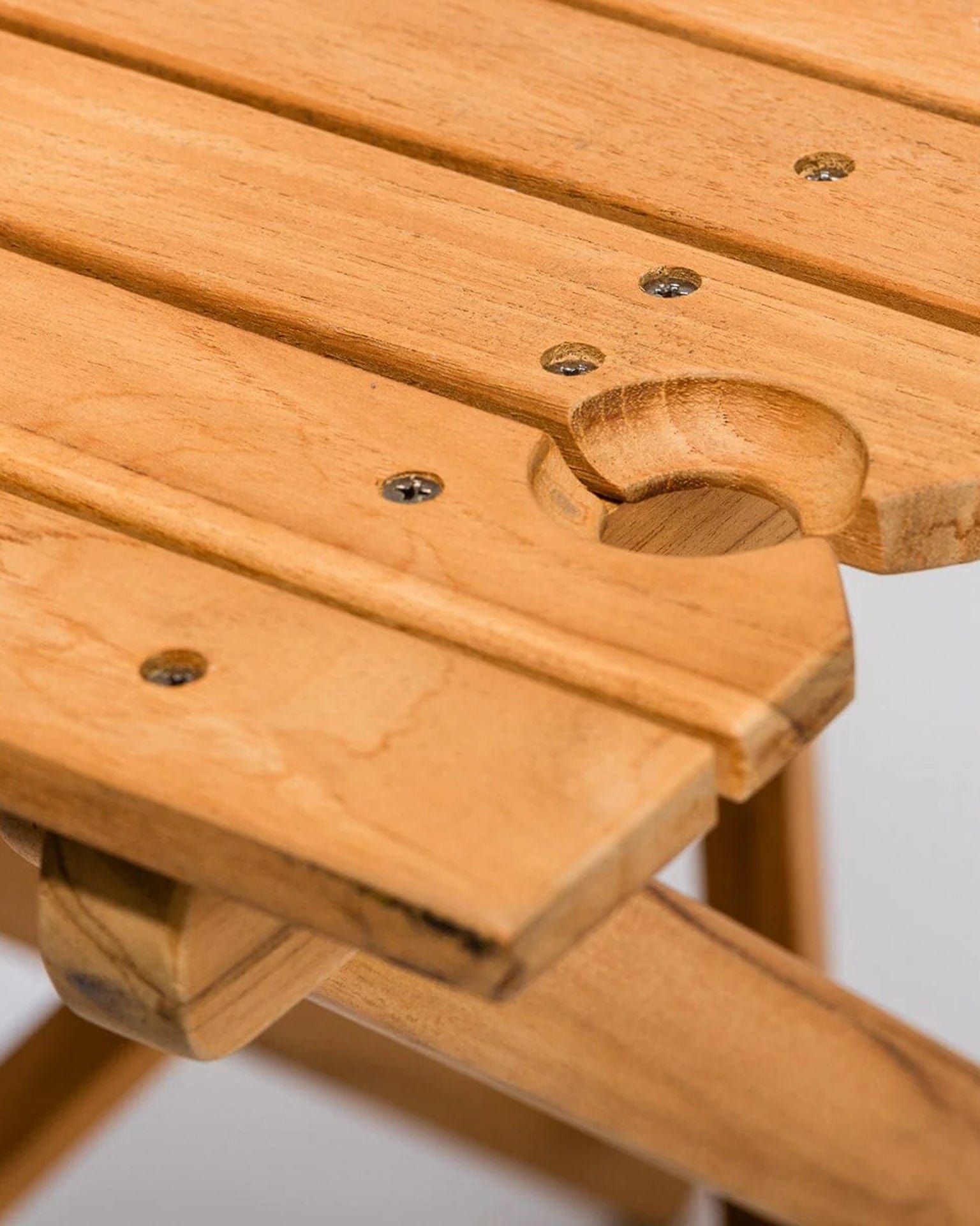 The Tall Folding Table from Business & Pleasure Co is the perfect on-the-go dining or drinks companion. Including a hole for your umbrella, 4 wine glass holders and premium wood, this folding table folds down flat to fit or slide into any small space for storage.