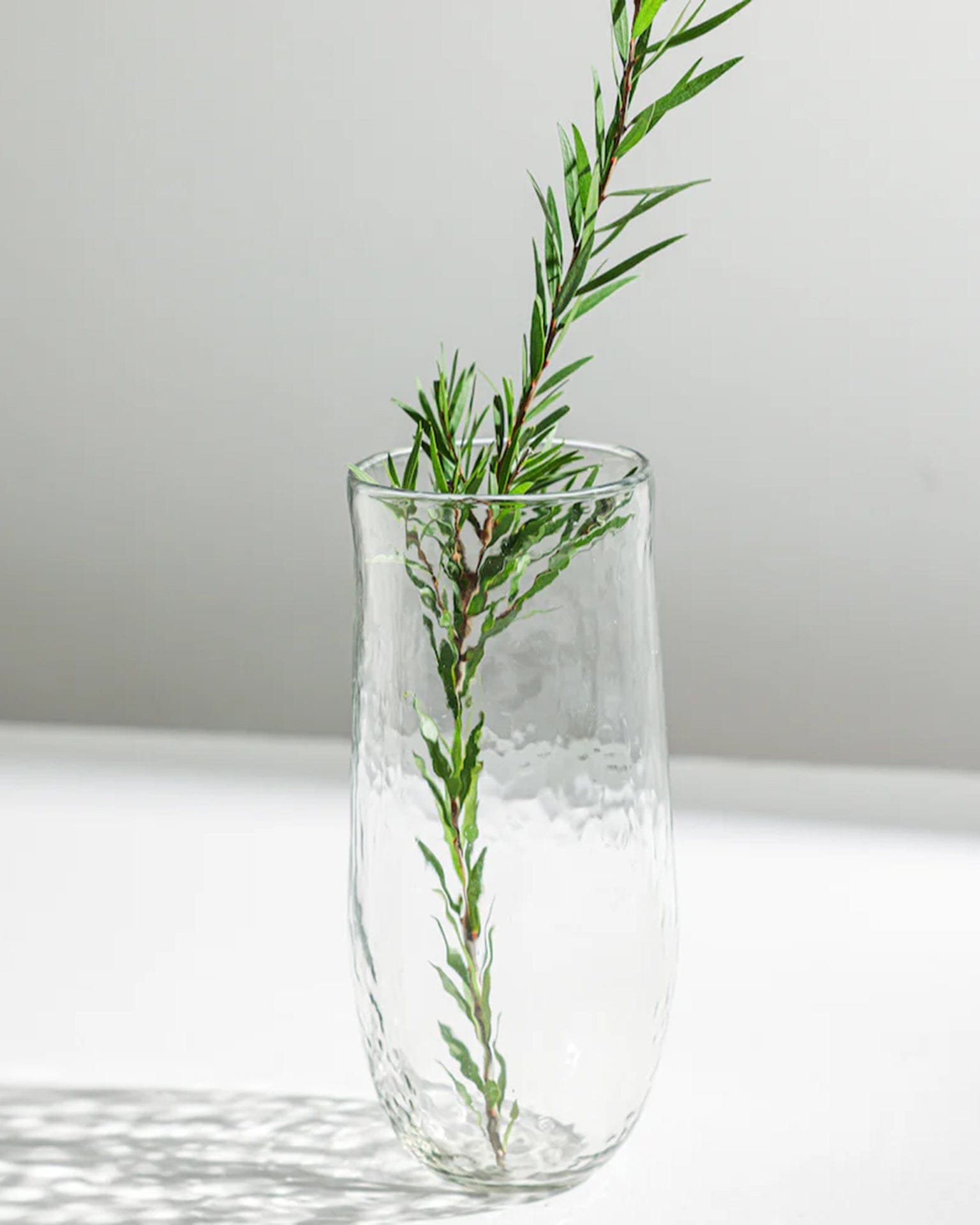 As a simple, elegant holder for your tallest branches and longest stems, this tall pebbled glass vase from The Collective elevates its contents without outshining them. Made of thick, clear recycled glass, this softly textured vessel looks right at home in any environment.