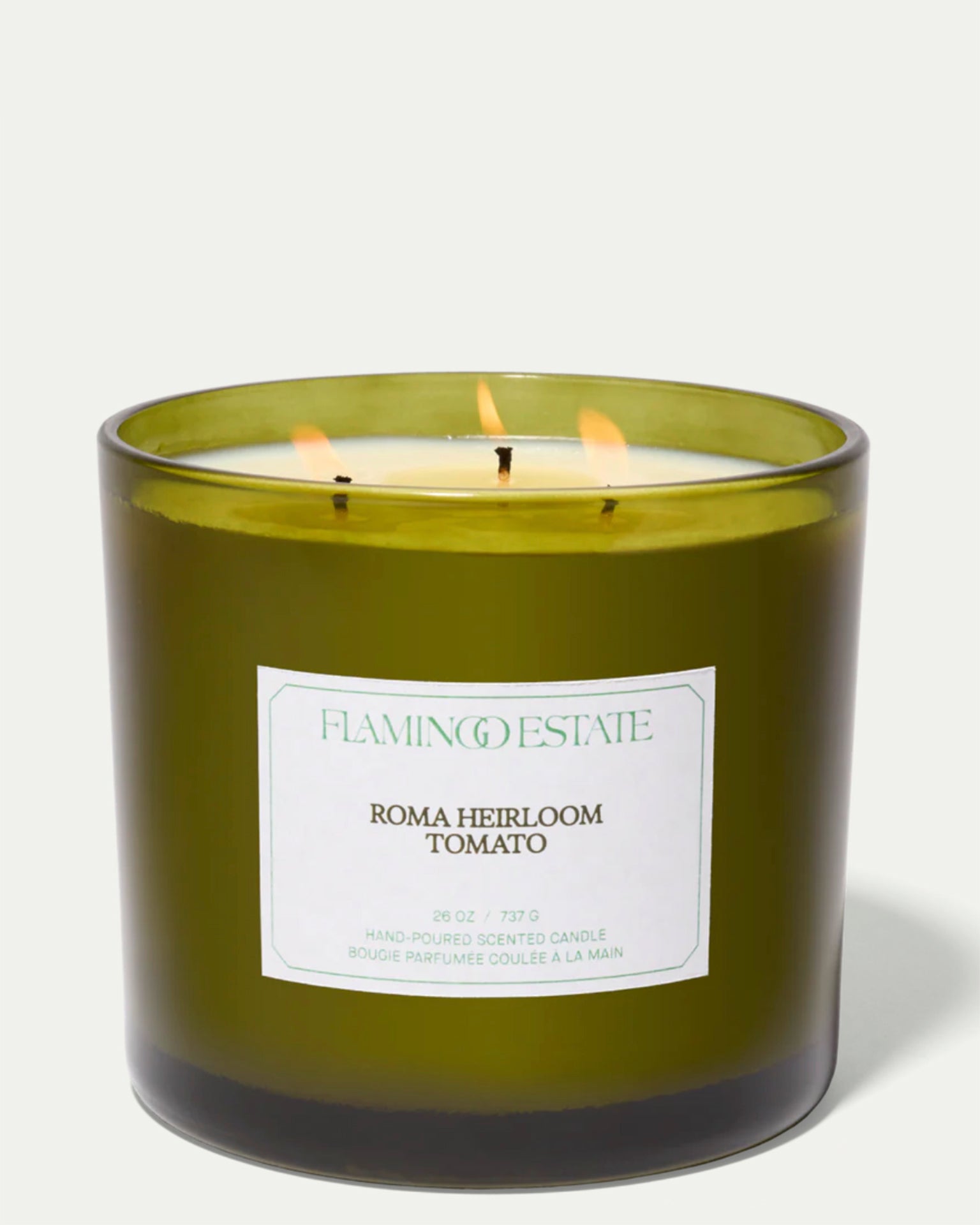 The Heirloom Tomato Candle is Flamingo Estate's most famous product, and now, they've triple sized it to carry to every corner of your home. Supple and green, the scent of this Candle is reminiscent of balmy Summer nights in the garden, where Tomatoes hang heavy from freshly watered vines and the leaves become their most fragrant. Releasing an intoxicating aroma of herbaceous, peppery Earth, and lighting up an unequivocal Summer feeling that throws far and wide.