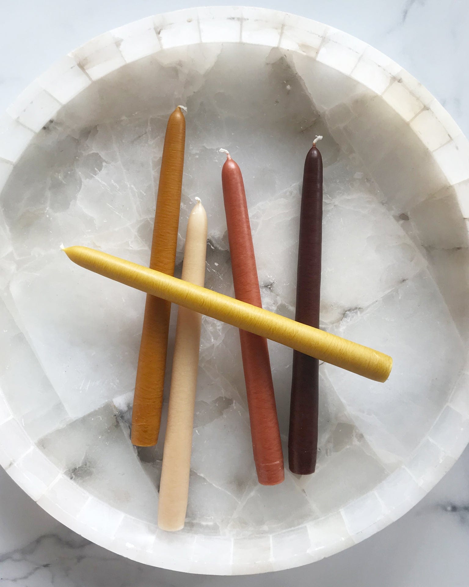 The Zodiac Taper Candles from BOTANICA are dipped over 20 times by hand, creating the ideal taper (dripless and smokeless!) that's perfect for dinner parties and creating warm, homey ambiance. Coming in a set of 5 complementing colors, these candles are 10″ in height, they're hand dyed and feature a beautifully textured finish.